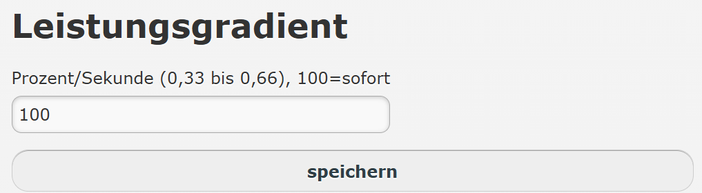 Über den Leistungsgradienten wird festgelegt wie schnell die PV Anlag geregelt wird. Eingestellt werden die Prozente pro Sekunde.