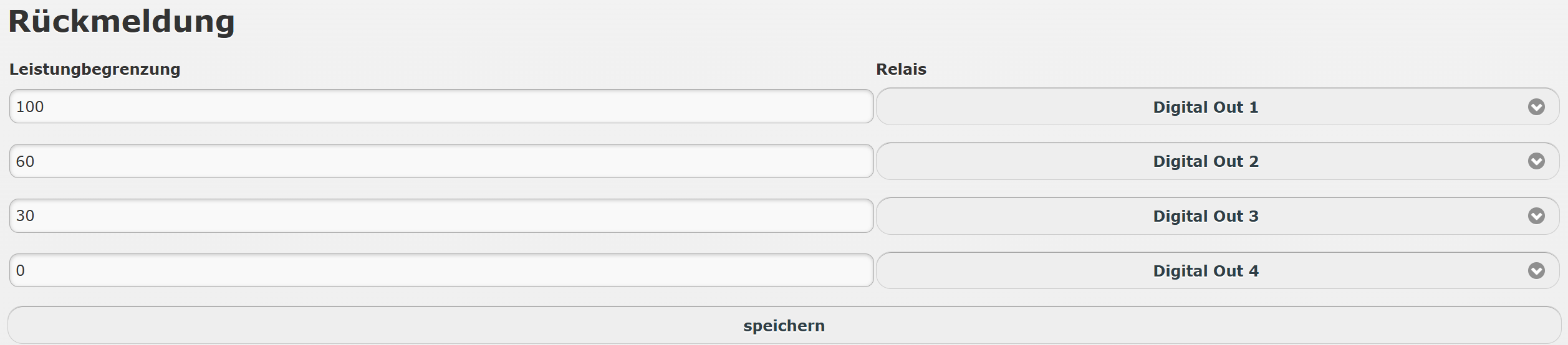 Digitaler Rückmeldekontakt der eingestellten Wirkleistungsregelung. Standardmäßig für die 0,30,60 und 100% Rückmeldung zum Energieversorger.